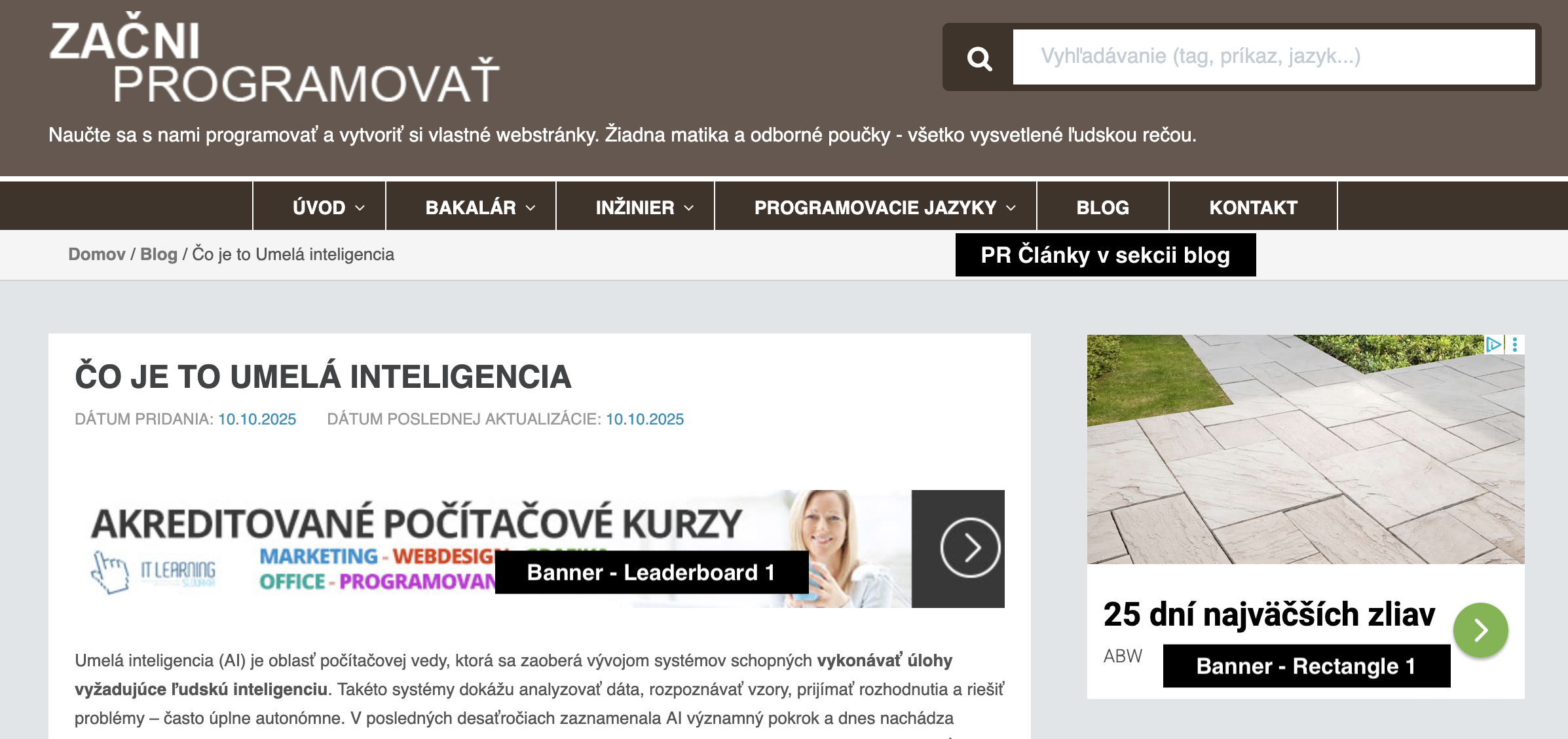 Na našom portáli ponúkame možnosť publikácie PR článkov, reklamných bannerov a spätných odkazov. Ak hľadáte priestor pre propagáciu vašich produktov, služieb alebo webu v oblasti programovania, IT a technológií, ste na správnom mieste.