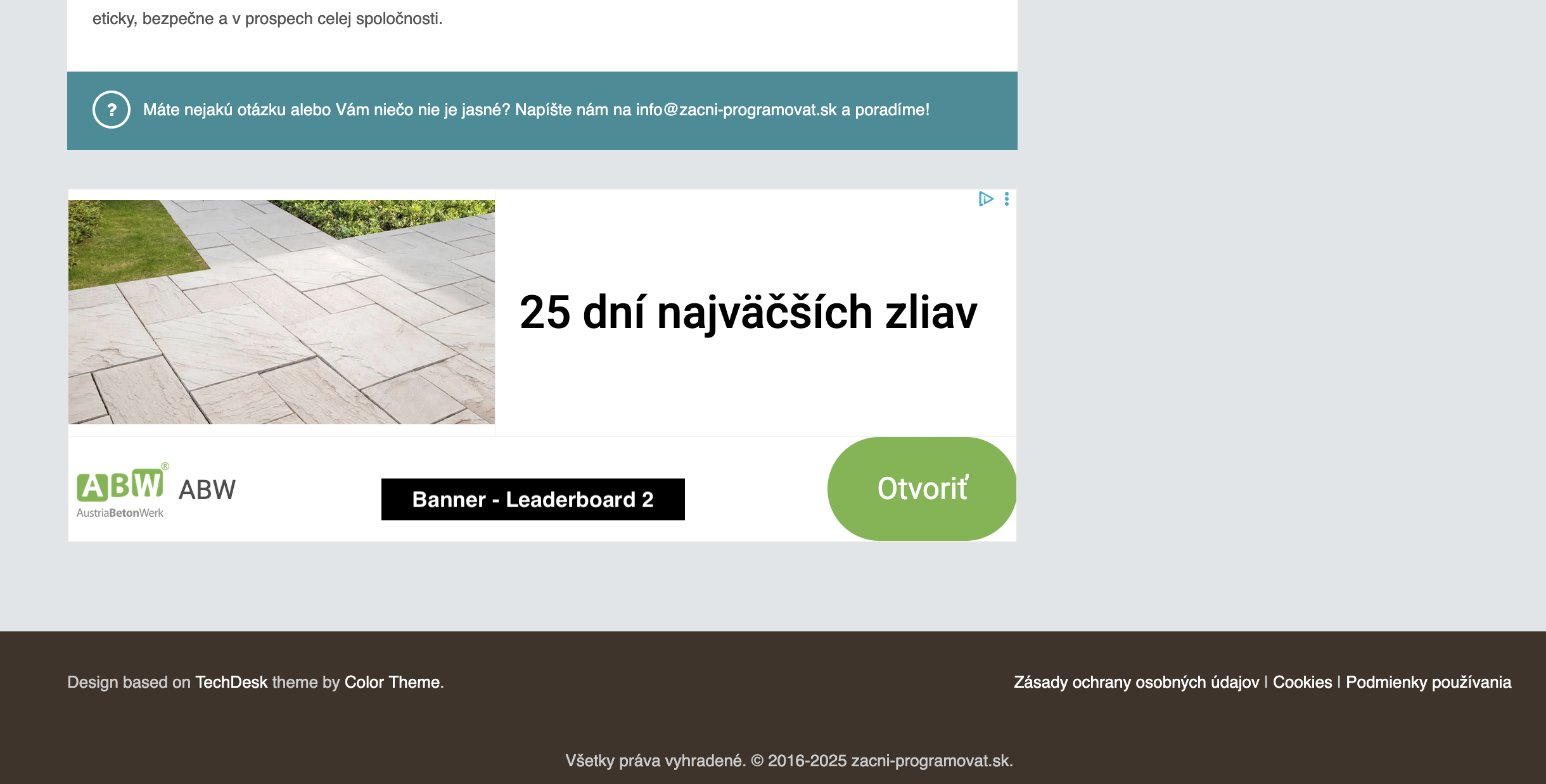 Náš portál funguje od roku 2016 a obsahuje viac ako 100 náučných článkov. Väčšina návštevníkov sa zaujíma o kurzy, technológie a vzdelávanie v oblasti IT.